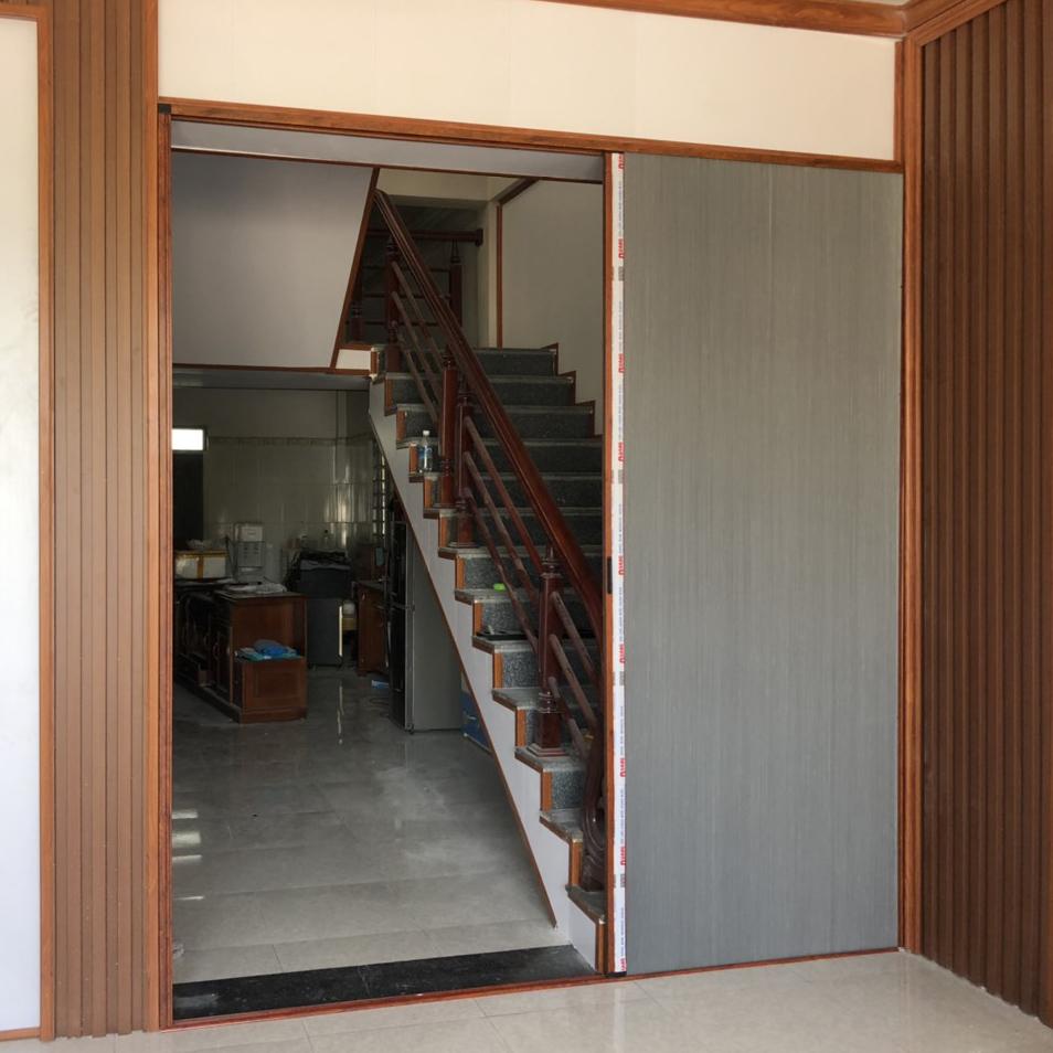 - Loại vách xếp tổ ong kéo về hai bên có hai cánh hai bên kéo như cửa thông thường. Loại này phù hợp với cửa có diện tích lớn. Chiều rộng tối đa dưới 5m.